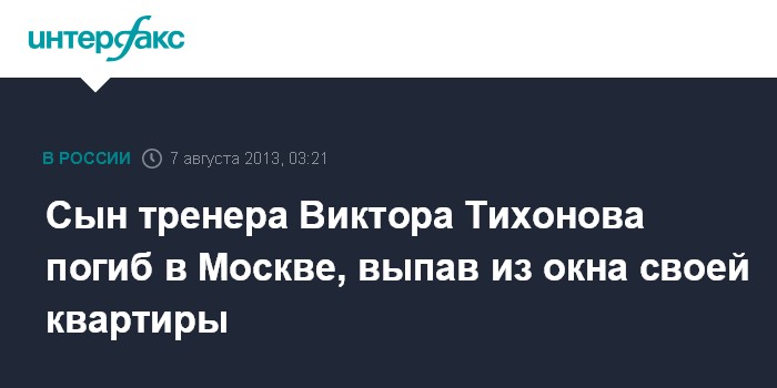 Сын тренера Виктора Тихонова погиб в Москве, выпав из окна своей квартиры