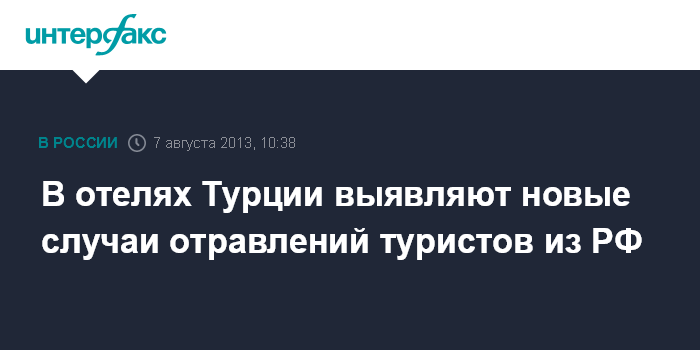 Москва. 7 августа. INTERFAX.RU - В турецких отелях по-прежнему фиксируют новые случаи отравлений российских туристов, говорится в сообщении, размещенном в среду на сайте Ростуризма.