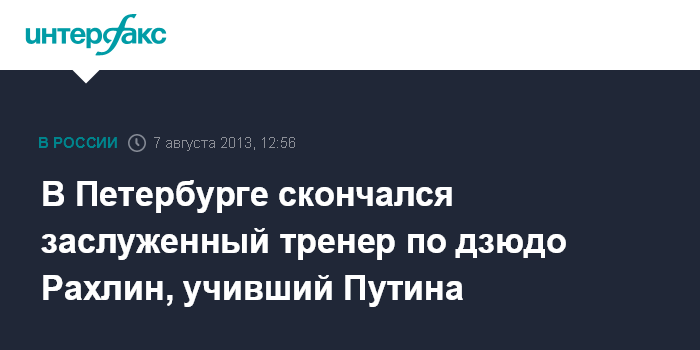 Санкт-Петербург. 7 августа. INTERFAX.RU - После тяжелой продолжительной болезни в среду скончался заслуженный тренер РФ Анатолий Рахлин, сообщила региональная федерация дзюдо Санкт-Петербурга.