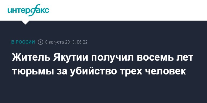Житель Якутии получил восемь лет тюрьмы за убийство трех человек