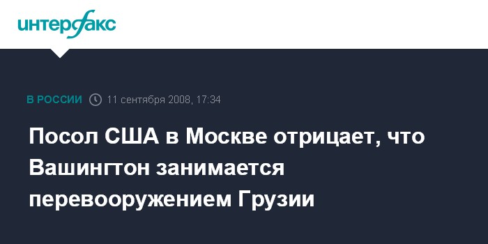 Москва. 11 сентября. INTERFAX.RU - Посол США в России Джон Байерли отверг обвинение в том, что Вашингтон перевооружает Грузию.