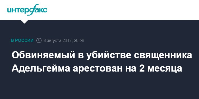 Обвиняемый в убийстве священника Адельгейма арестован на 2 месяца