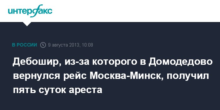 Дебошир, из-за которого в Домодедово вернулся рейс Москва-Минск, получил пять суток ареста