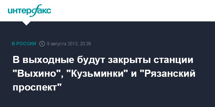 В связи с проведением работ по присоединению новых станций метрополитена Таганско-Краснопресненской линии с 22:00 9 августа 2013 г. до 11 августа 2013 г. включительно и с 22:00 23 августа 2013 г. по 25 августа 2013 г. включительно станции метро "Выхино", "Рязанский проспект" и "Кузьминки" будут закрыты. Движение поездов на этом участке будет остановлено, чтобы подготовить к запуску две новые станции - "Жулебино" и "Лермонтовский проспект".