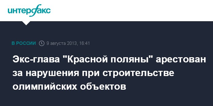 Экс-глава "Красной поляны" арестован за нарушения при строительстве олимпийских объектов