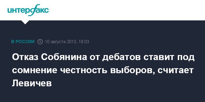 Отказ Собянина от дебатов ставит под сомнение честность выборов, считает Левичев