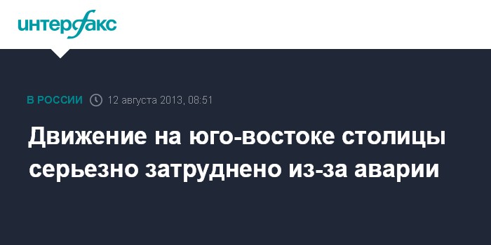 Движение на юго-востоке столицы серьезно затруднено из-за аварии