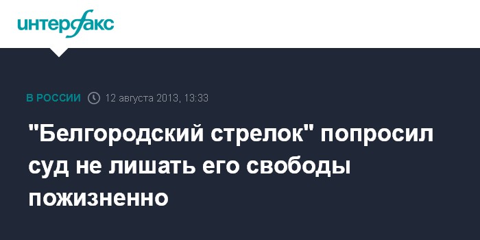 Представитель Белгородского областного суда сообщил "Интерфаксу" в понедельник, что прокурор попросил суд назначить "белгородскому стрелку" пожизненное заключение. "К сожалению, обвинение не может запросить смертной казни", - сказал гособвинитель во время прений.