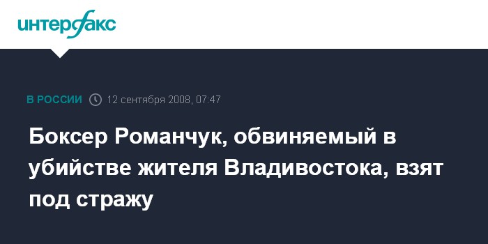 Владивосток. 12 августа. INTERFAX.RU - Известный российский боксер Роман Романчук, в стычке с которым погиб 22-летний житель Владивостока, по решению суда взят под стражу, сообщила агентству "Интерфакс-Дальний Восток" старший помощник руководителя СУ СКП РФ по Приморью Аврора Римская.