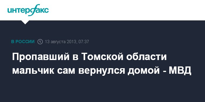 Томск. 13 августа. INTERFAX.RU - УМВД по Томской области проводит проверку по факту пропажи девятилетнего мальчика, который сам вернулся домой, сообщает пресс-служба ведомства.