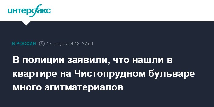 В полиции заявили, что нашли в квартире на Чистопрудном бульваре много агитматериалов