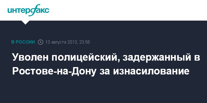 В нем отмечается, что по результатам служебной проверки приказом начальника УМВД России по Ростову-на-Дону сотрудник полиции, задержанный по подозрению в совершении преступления, уволен из органов внутренних дел "за совершение проступка, порочащего честь сотрудника ОВД".