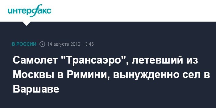 Самолет "Трансаэро", летевший из Москвы в Римини, вынужденно сел в Варшаве
