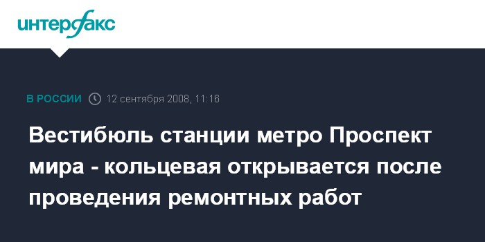 Москва. 12 сентября. INTERFAX.RU - Вестибюль станции столичной подземки Проспект мира (кольцевая) был закрыт для входа и выхода пассажиров в пятницу утром из-за состояния жилого дома, в котором он находится, сообщили "Интерфаксу" в пресс-службе московского метро.