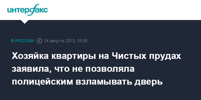 Москва. 14 августа. INTERFAX.RU - Хозяйка квартиры на Чистопрудном бульваре, где накануне были обнаружены агитационные материалы в поддержку кандидата в мэры столицы Алексея Навального, давала разрешение на осмотр жилища, но не просила взламывать дверь.