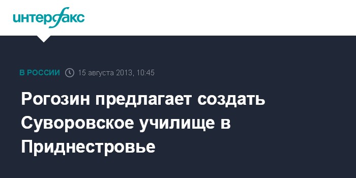 Москва. 15 августа. INTERFAX.RU - Вице-премьер РФ Дмитрий Рогозин предложил создать Суворовское училище в Приднестровье.