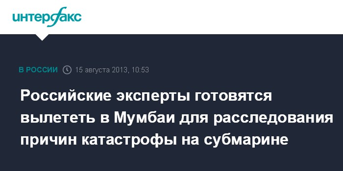 Москва. 15 августа. INTERFAX.RU - Команда российских специалистов формируется в Москве, чтобы отправиться в Мумбаи для оказания помощи индийской стороне в расследовании причин катастрофы на подлодке проекта 877ЭКМ "Синдуракшак", сообщил в четверг "Интерфаксу" источник в российской кораблестроительной отрасли.