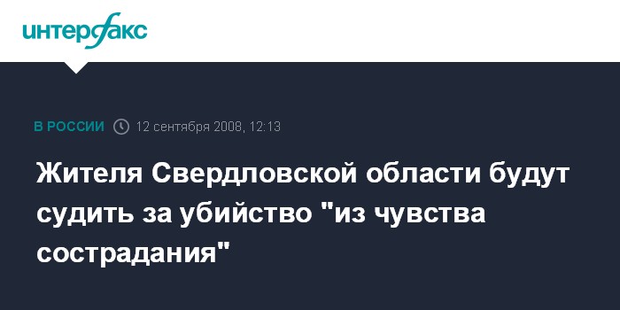 Екатеринбург. 12 сентября. INTERFAX.RU - Жителю г. Асбеста Свердловской области предъявлено обвинение в убийстве (ст. 105 УК РФ) сожительницы, которую он якобы лишил жизни из жалости.