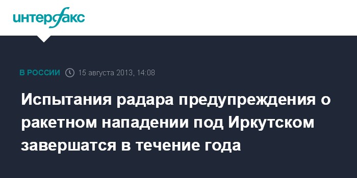 Москва. 15 августа. INTERFAX.RU - Радиолокационный комплекс предупреждения о ракетном нападении "Воронеж-М", построенный в Иркутской области, заступит на боевое дежурство в полном составе примерно через год, сообщил в четверг "Интерфаксу" главный конструктор РЛС высокой заводской готовности - замгендиректора ОАО "Радиотехнический институт имени академика А. Л. Минца" Владимир Шустов.