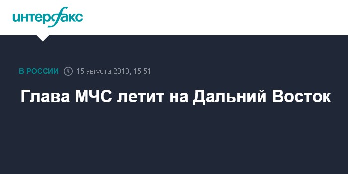Москва. 15 августа. INTERFAX.RU - Глава МЧС России Владимир Пучков вылетает в район паводка на Дальнем Востоке, чтобы на месте оценить ситуацию и координировать работы, сообщила официальный представитель МЧС Ирина Россиус.