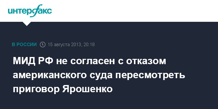 МИД РФ не согласен с отказом американского суда пересмотреть приговор Ярошенко