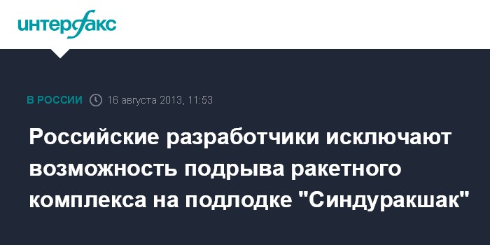 Российские разработчики исключают возможность подрыва ракетного комплекса на подлодке "Синдуракшак"