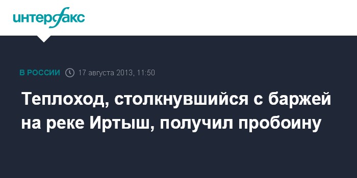 Теплоход, столкнувшийся с баржей на реке Иртыш, получил пробоину
