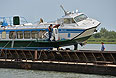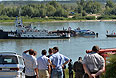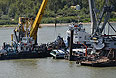 И как стало известно, теплоход, наполовину затонувший после столкновения с баржей, находится сейчас в подвешенном состоянии, работы по его подъему начнутся в воскресенье утром. Об этом сказал на экстренном совещании губернатор Омской области Виктор Назаров. По его словам, сейчас затонувший нос теплохода поддерживает плавучий кран, не давая ему погружаться в воду дальше.
