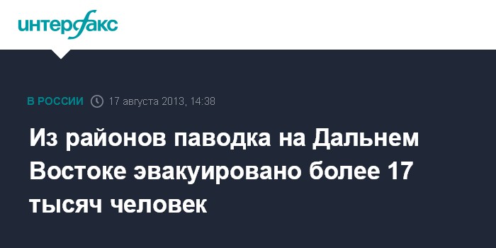 Из районов паводка на Дальнем Востоке эвакуировано более 17 тысяч человек