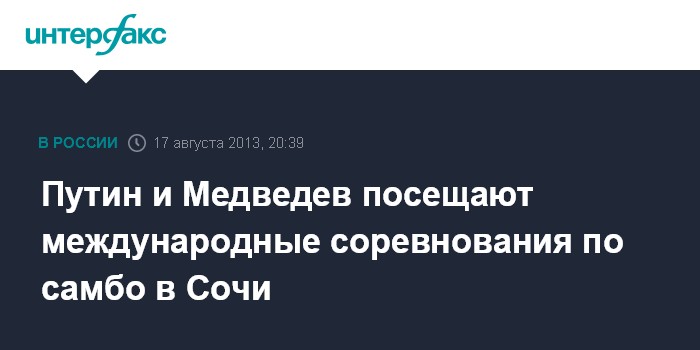 Сочи. 17 августа. INTERFAX.RU - Президент РФ Владимир Путин и премьер-министр Дмитрий Медведев в субботу вечером прибыли на международный турнир по профессиональному боевому самбо в Сочи.