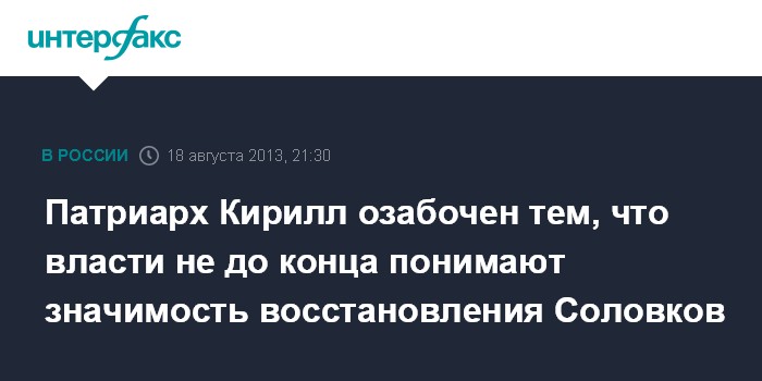 Патриарх Кирилл озабочен тем, что власти не до конца понимают значимость восстановления Соловков