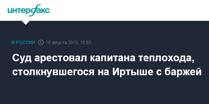 Новосибирск. 19 августа. INTERFAx.RU - Ленинский районный суд Омска в понедельник избрал меру пресечения в виде заключения под стражу капитану теплохода "Полесье-8", при столкновении которого с баржей на Иртыше в субботу погибло шесть человек.