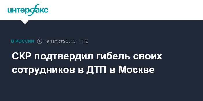Москва. 19 августа. INTERFAX.RU - Столичный главк СКР подтверждает гибель трех своих сотрудников в ДТП на юго-западе столицы, выражает соболезнования родным и близким погибших, сообщили "Интерфаксу" в ГСУ СК РФ по Москве.