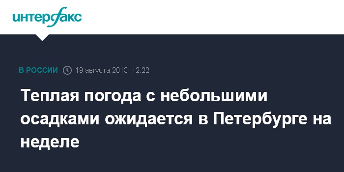 Санкт-Петербург. 19 августа. INTERFAX.RU - Теплая погода с кратковременными дождями сохранится в начале наступившей недели в Петербурге и Ленинградской области, затем в регион придет циклон, сообщили "Интерфаксу" в городском Гидрометцентре в понедельник.