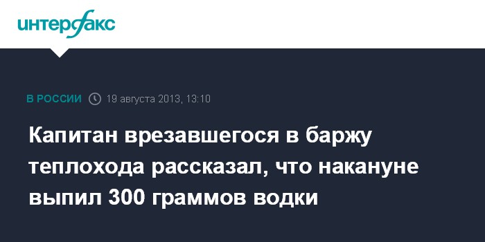 Новосибирск. 19 августа. INTERFAX.RU - Капитан теплохода "Полесье-8", признав свою вину в кораблекрушении, сообщил, что накануне употреблял алкоголь.