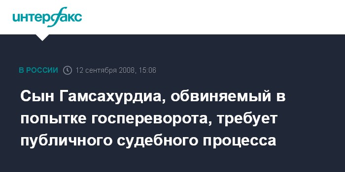 Сын Гамсахурдиа, обвиняемый в попытке госпереворота, требует публичного судебного процесса