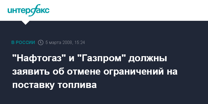 "Нафтогаз" и "Газпром" должны заявить об отмене ограничений на поставку топлива