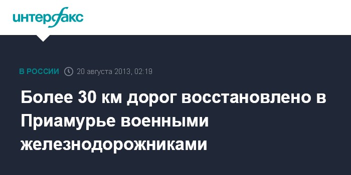 Москва. 20 августа. ИНТЕРФАКС - Подразделения железнодорожных бригад Восточного военного округа восстанавливают поврежденные в результате сильного паводка дороги в Приамурье, сообщили "Интерфаксу" в управлении пресс-службы и информации Минобороны России.