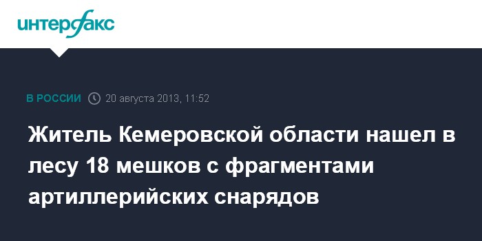Кемерово. 20 августа. INERFAX.RU - Большое количество фрагментов артиллерийских снарядов, подлежащих захоронению, нашел кузбассовец в лесу вблизи села Верх-Тайменка в Кемеровской области.