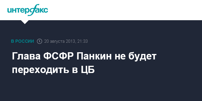 Москва. 20 августа. INTERFAX.RU - Руководитель Федеральной службы по финансовым рынкам (ФСФР) Дмитрий Панкин не будет писать заявление о переходе в ЦБ РФ, которому с 1 сентября передаются полномочия ФСФР. "Я принял для себя решение не писать заявление", - сказал Панкин в интервью агентству "Интерфакс".
