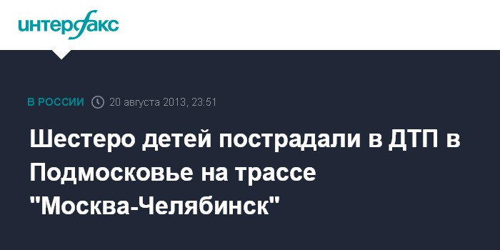 Москва. 20 августа. INTERFAX.RU - Шесть детей пострадали в результате ДТП в Подмосковье.