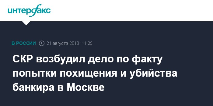 СКР возбудил дело по факту попытки похищения и убийства банкира в Москве