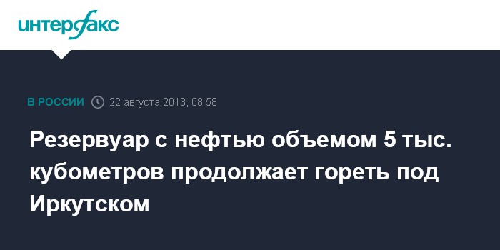 Иркутск. 22 августа. INTERFAX.RU - Ростехнадзор создаст специальную комиссию для расследования причин крупного пожара на нефтехранилище в Ангарском районе Иркутской области, где уже более 25 часов горит резервуар с сырой нефтью емкостью 5 тыс. кубометров.
