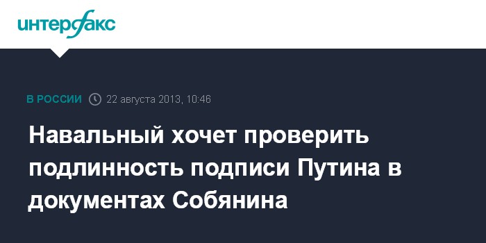 Навальный хочет проверить подлинность подписи Путина в документах Собянина