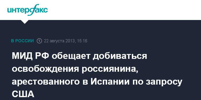 МИД РФ обещает добиваться освобождения россиянина, арестованного в Испании по запросу США