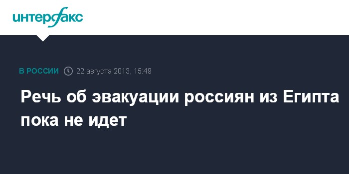 Москва. 22 августа. INTERFAX.RU - В РФ пока не рассматривают вариант с эвакуацией российских туристов из Египта, заявил официальный представитель МИД РФ Александр Лукашевич.