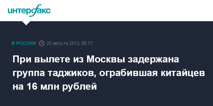 При вылете из Москвы задержана группа таджиков, ограбившая китайцев на 16 млн рублей