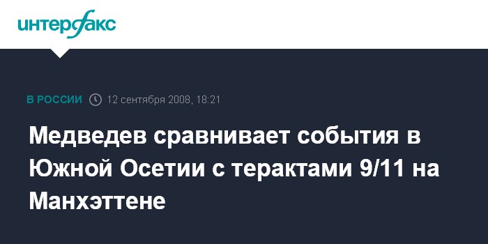 Медведев сравнивает события в Южной Осетии с терактами 9/11 на Манхэттене