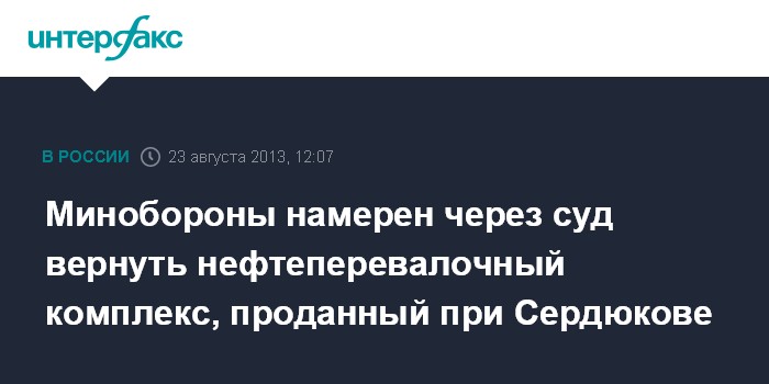 Москва. 23 августа. INTERFAX.RU - Министерство обороны включилось в судебную тяжбу за нефтеперевалочный комплекс в поселке Мохнаткина Пахта Мурманской области, который был продан при экс-министре обороны Анатолии Сердюкове на 240 млн. рублей дешевле рыночной стоимости, сообщил "Коммерсант" в пятницу.