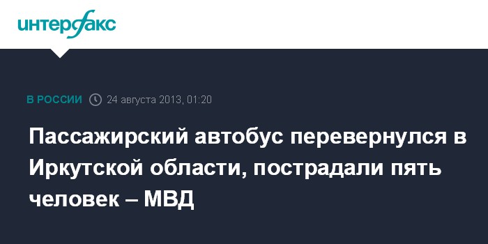 Иркутск. 24 августа. ИНТЕРФАКС-СИБИРЬ – Междугородний автобус, следовавший по маршруту Иркутск – Улан-Удэ, перевернулся на 61 км федеральной трассы М55 в Иркутской области, сообщил агентству «Интерфакс-Сибирь» начальник пресс-службы регионального управления МВД Герман Струглин.